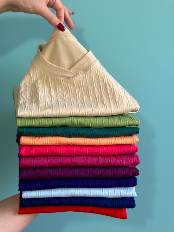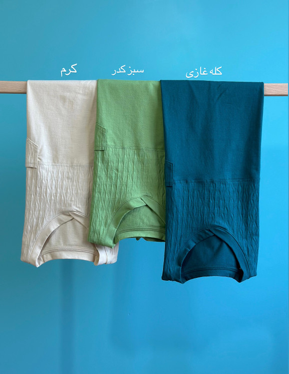 عرض سینه در حالت عادی ۵۳ - عرض سینه با کشسانی ۶۸ سانتیمتر _قد آستین از یقه ۳۲- قد تیشرت ۶۹/۵