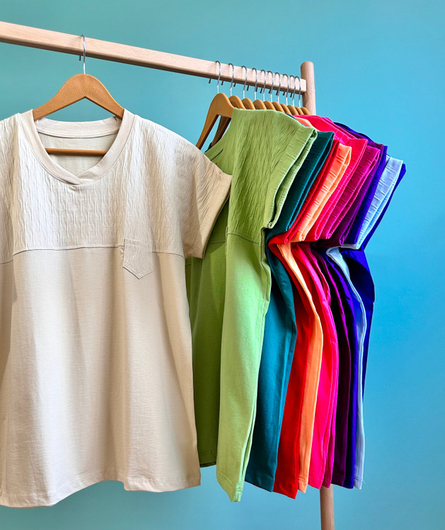 *سرشانه تیشرت کمی حالت افتاده دارد .