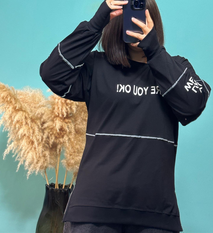 جنس: تیشرت آستین بلند نخ و پنبه میباشد و قواره آزاد و قد بلندی دارد .