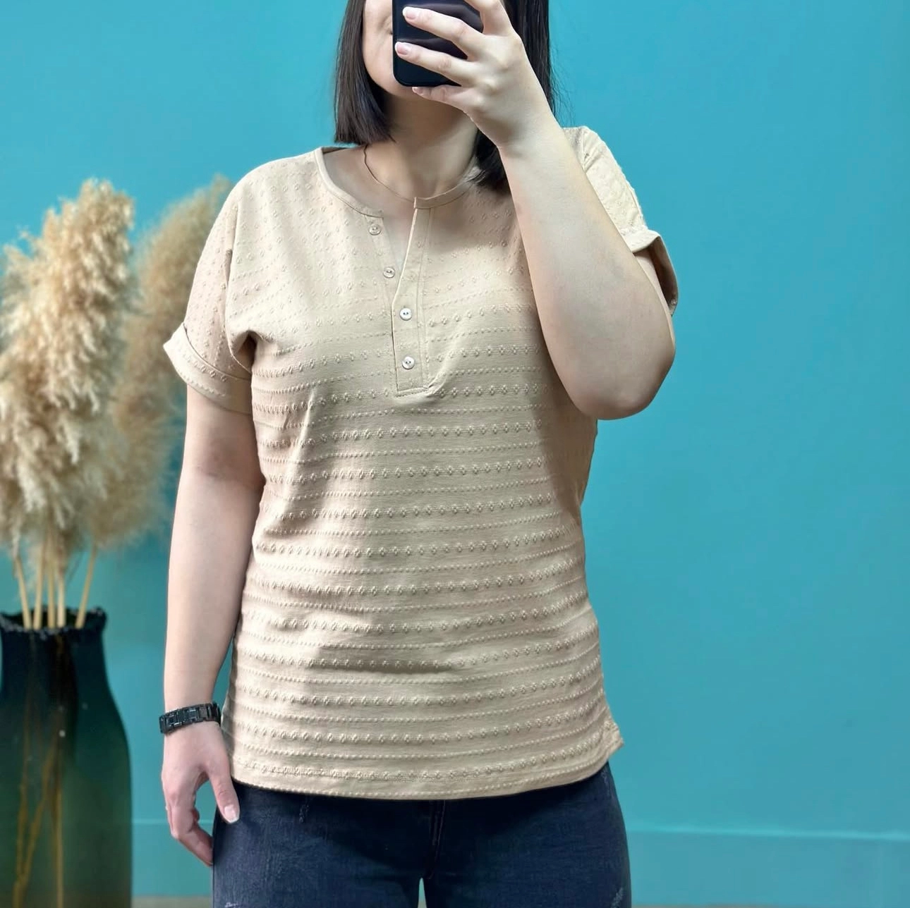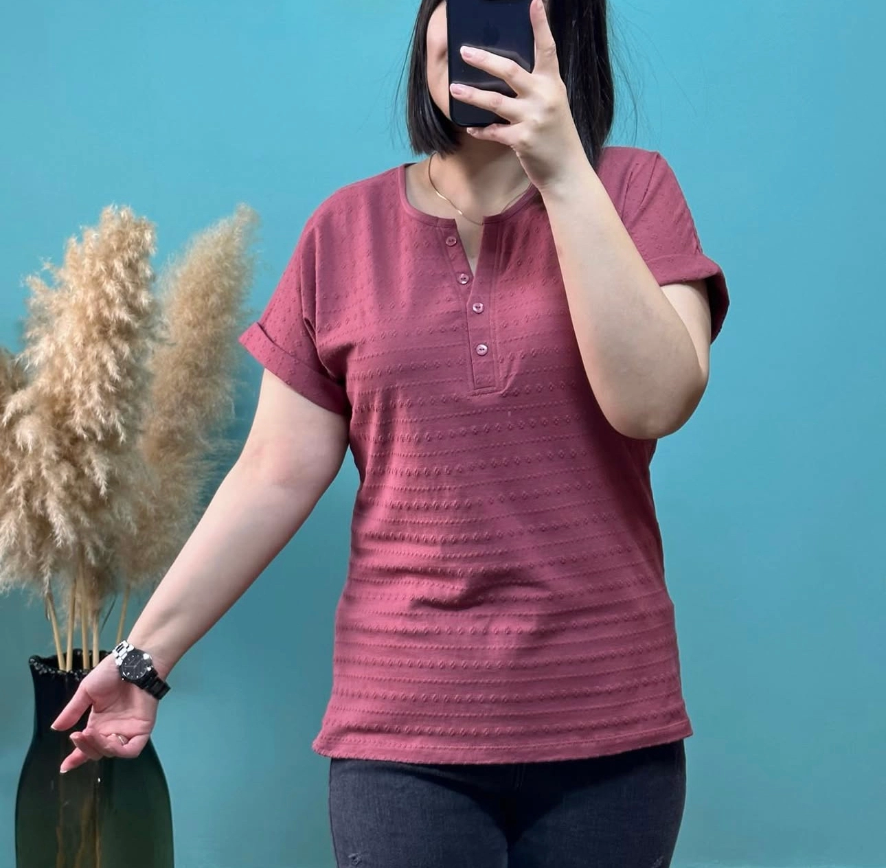 تیشرت یقه دلبری جلو دکمه دار کد ۱۳۲