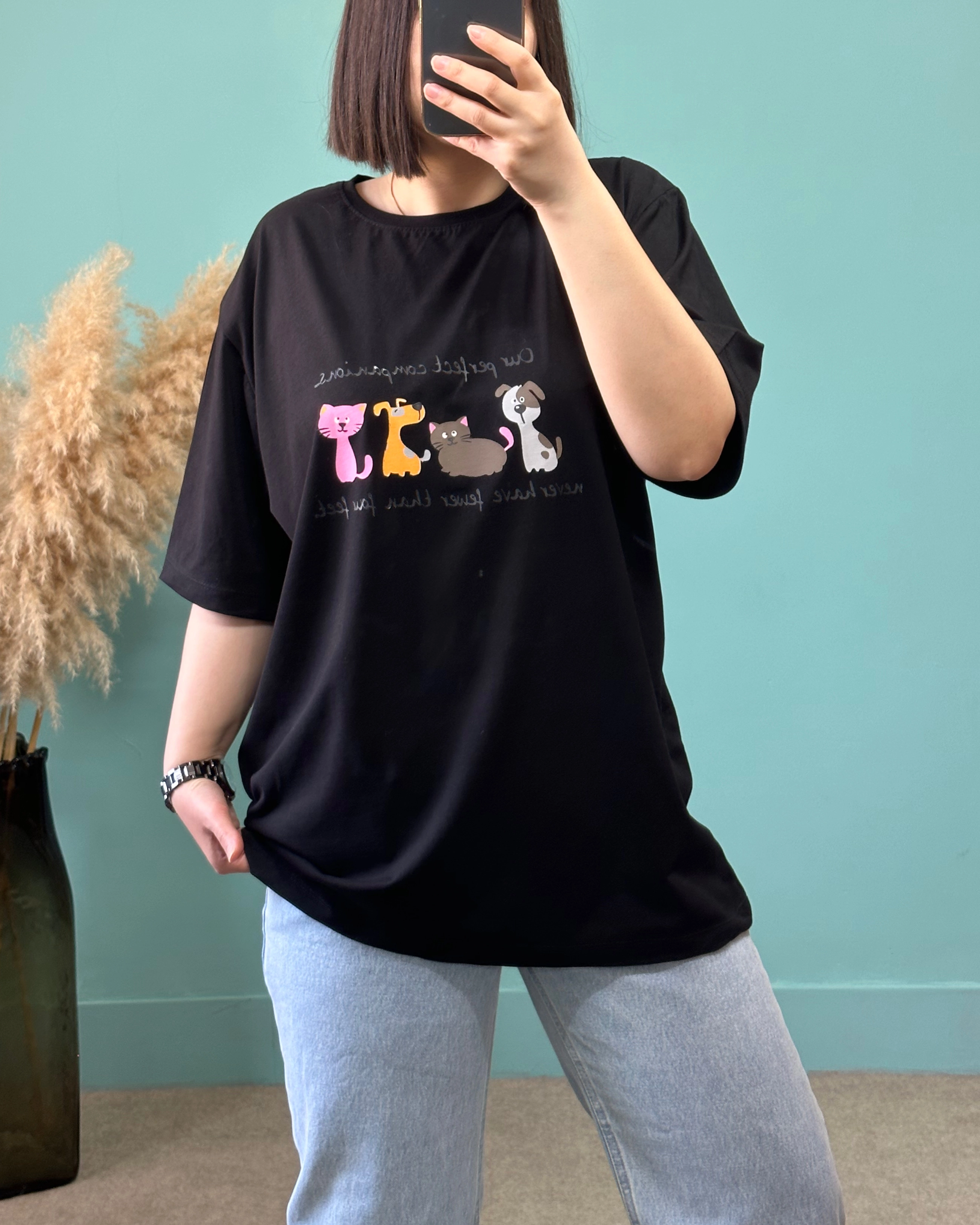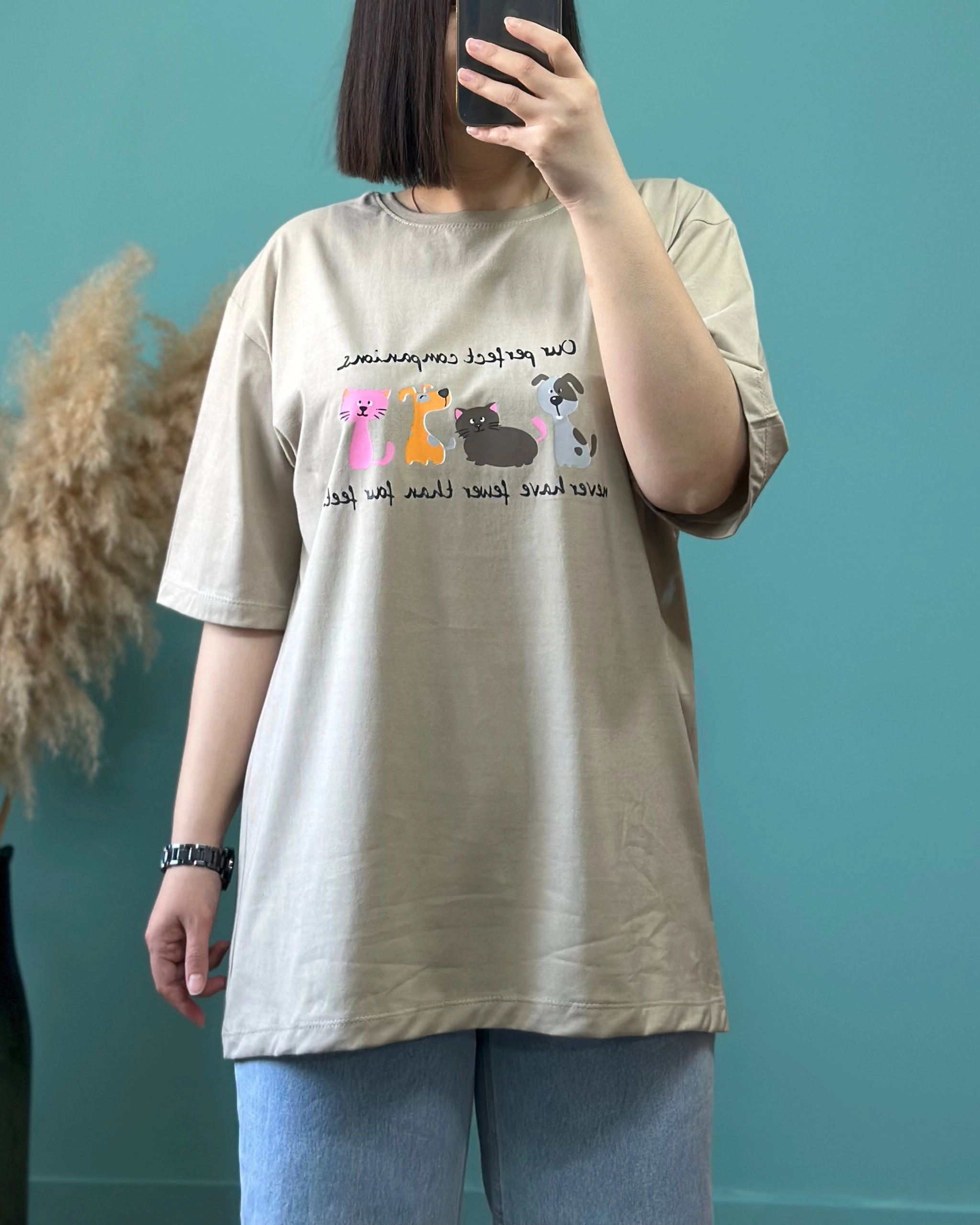 تیشرت ، نخ و پنبه میباشد و قواره آزاد و قد بلندی دارد .