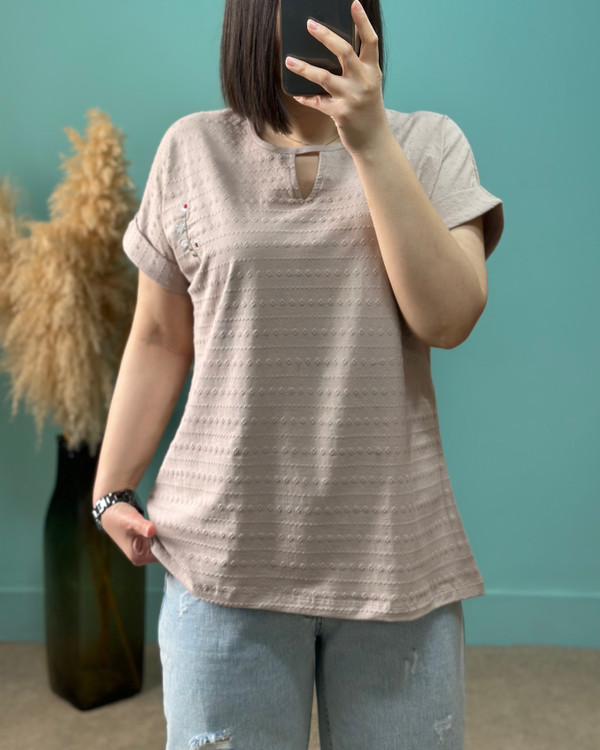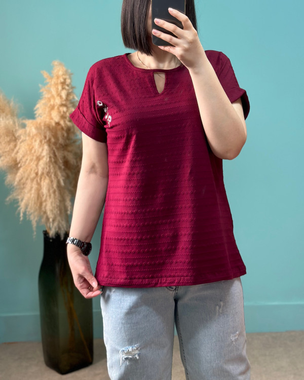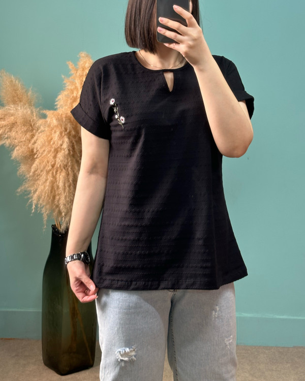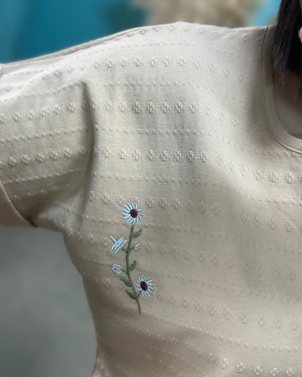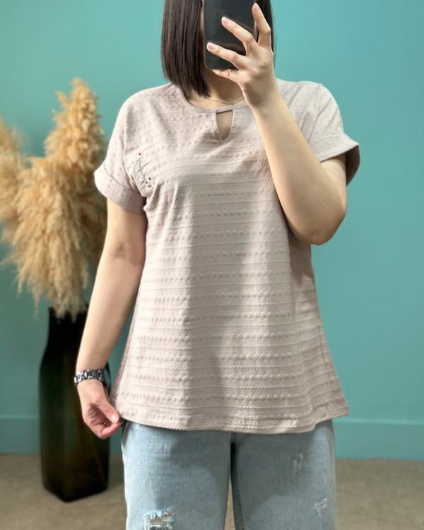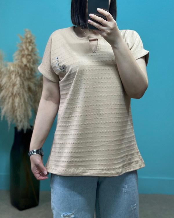 عرض سینه در حالت عادی ۵۵ سانتیمتر ، عرض سینه با کشسانی ۶۸ سانتیمتر _ قد آستین از یقه ۲۵ سانتیمتر _ قد تیشرت ۷۰ سانتیمتر