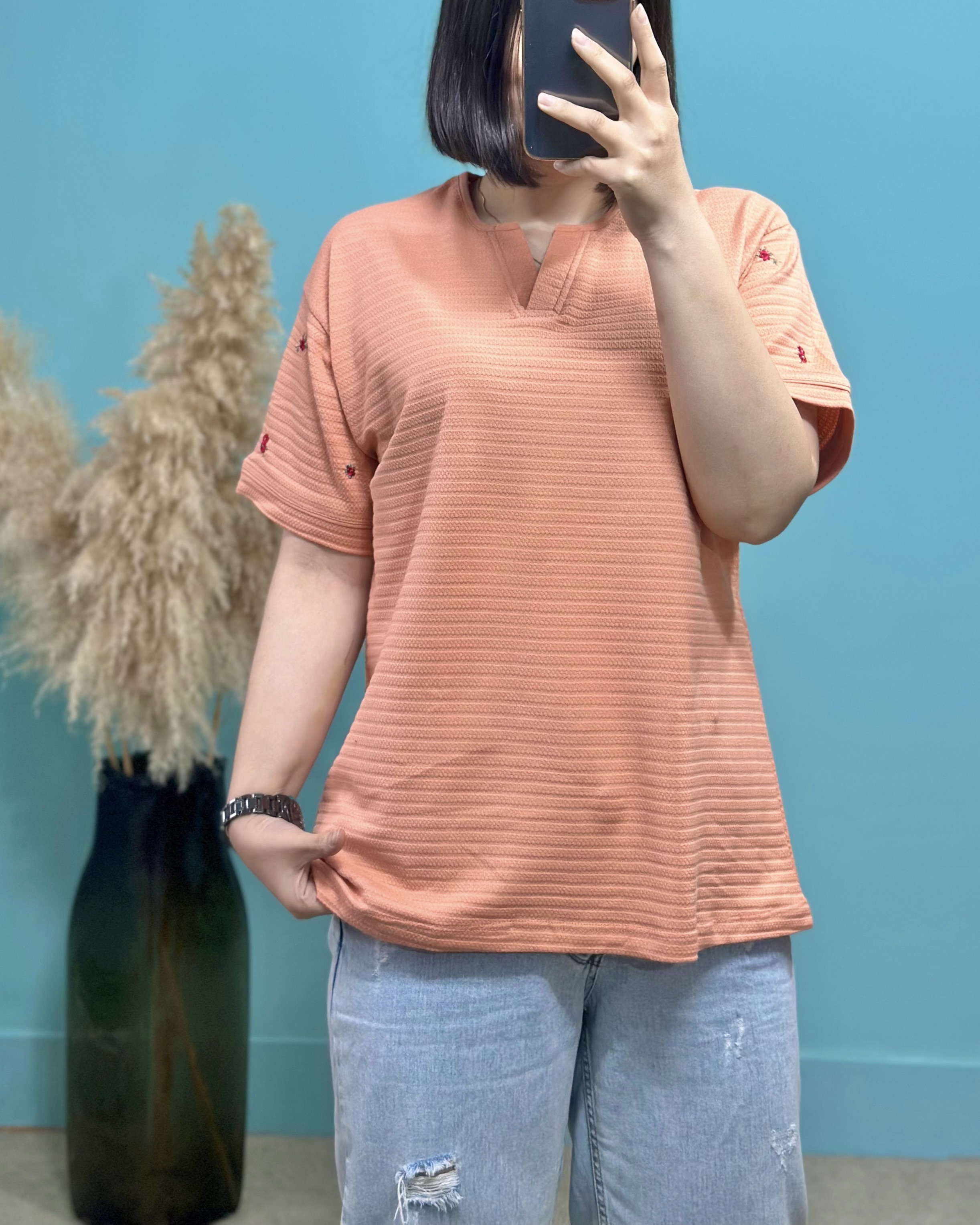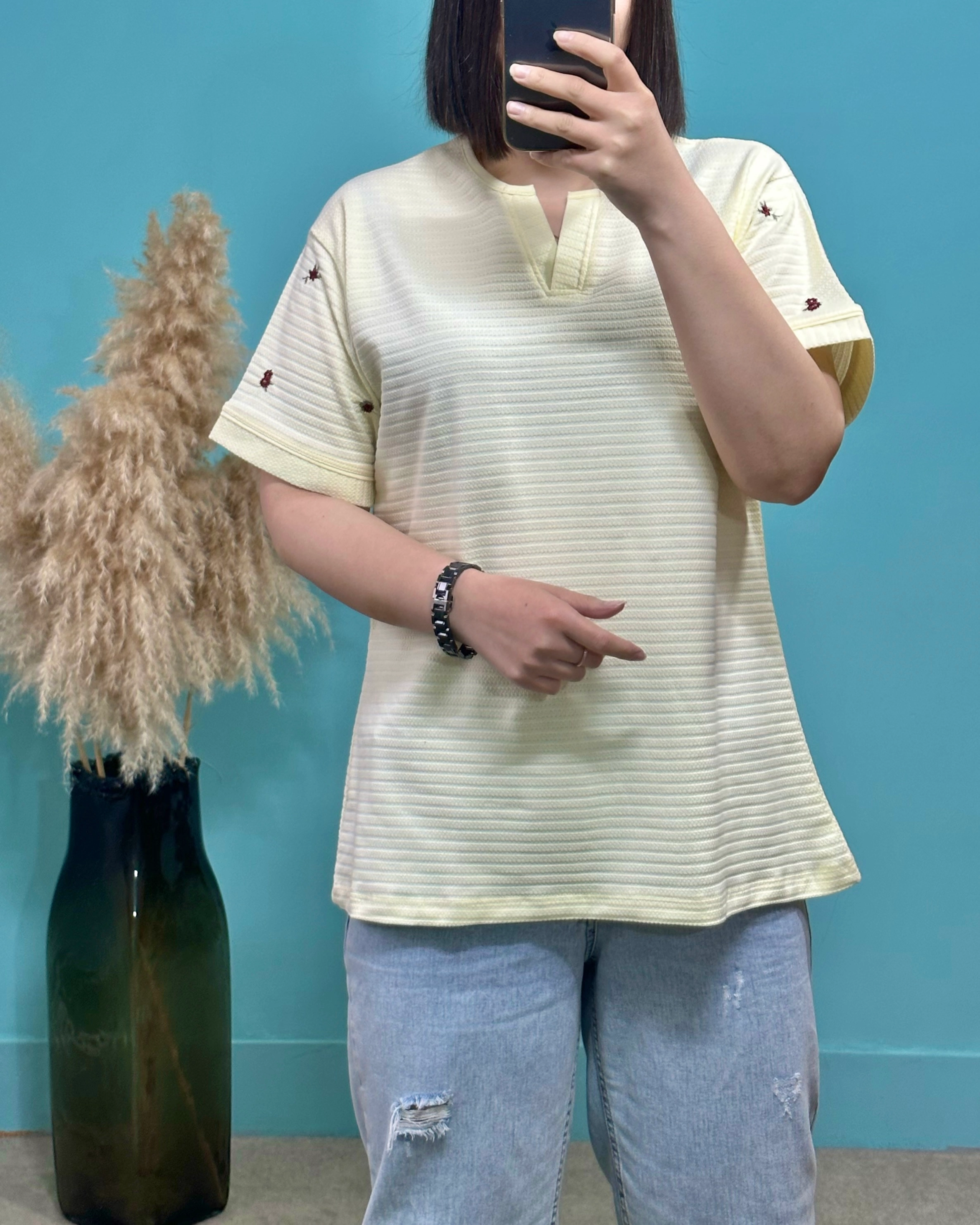 عرض سینه در حالت عادی ۵۳ ، عرض سینه با کشسانی ۷۱ سانتیمتر _ قد آستین از سرشانه ۲۰ _ قد تیشرت ۶۹ سانتیمتر