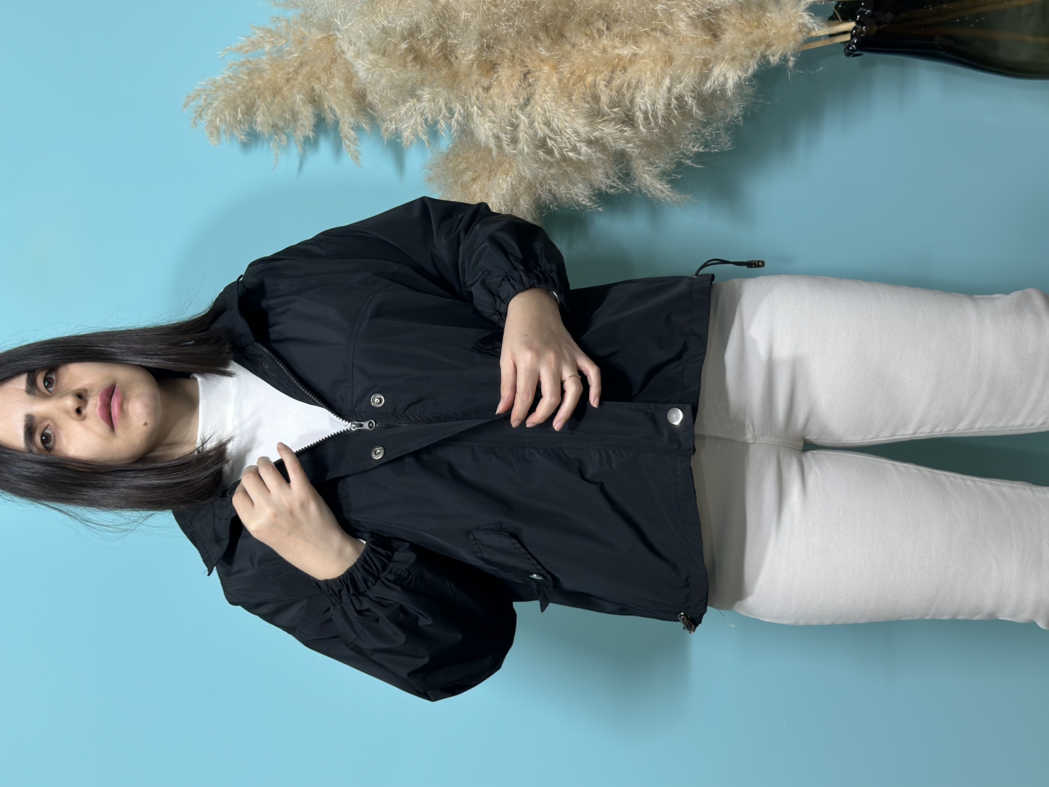 عرض سینه با زیپ بسته شده ۶۰ سانتیمتر _ قد آستین از یقه ۶۷ سانتیمتر _ قد آستین از سرشانه ۴۶ سانتیمتر (سرشانه کاپشن حالت افتاده دارد ) _ قد کاپشن ۶۱ سانتیمتر