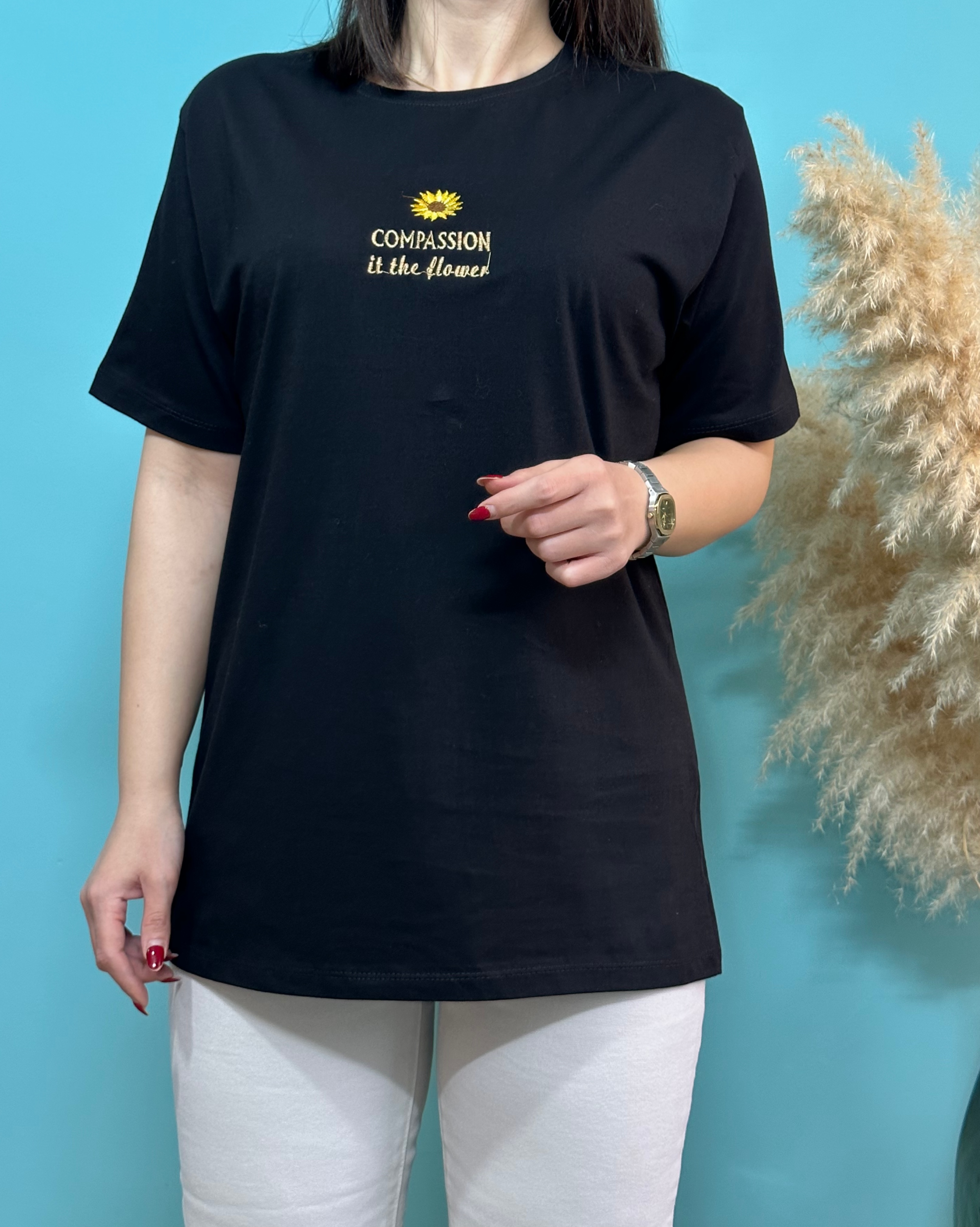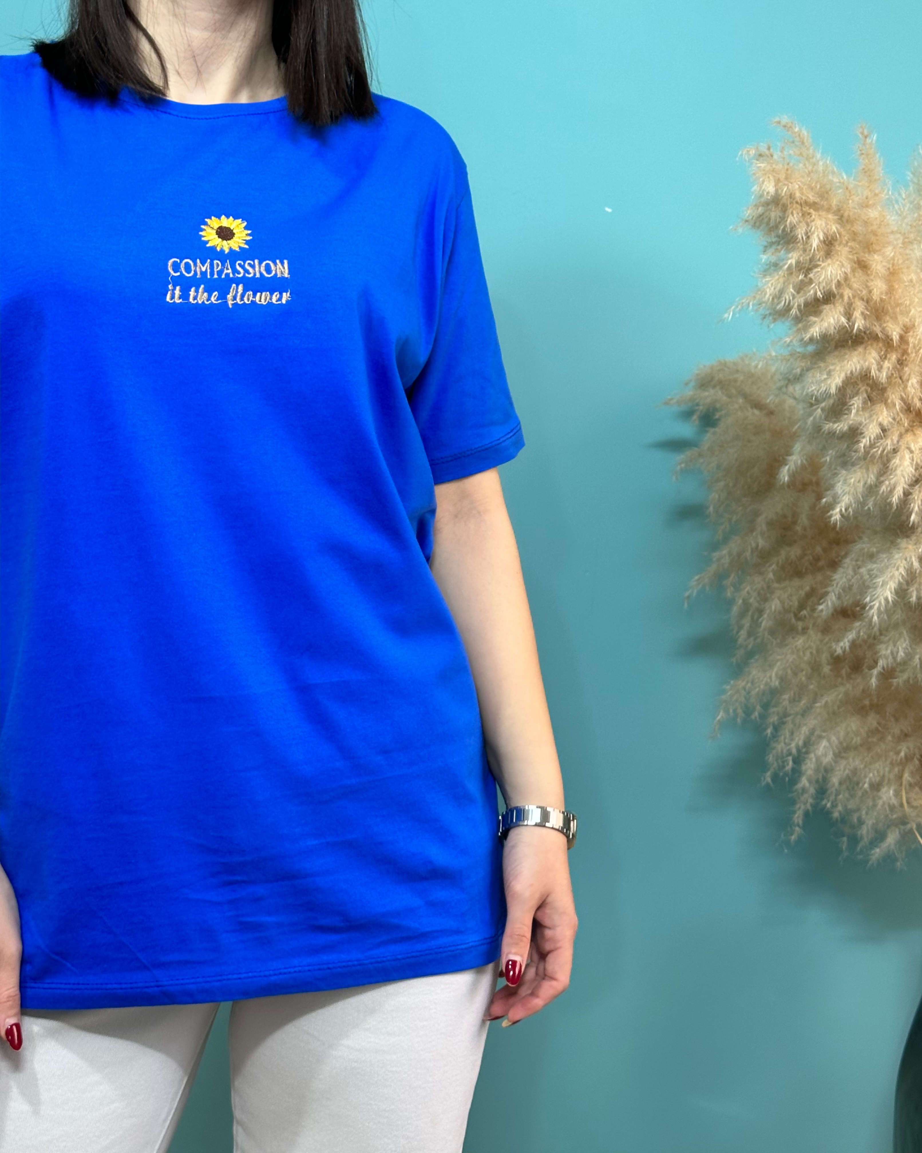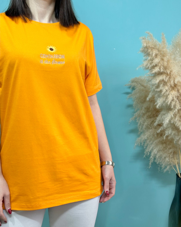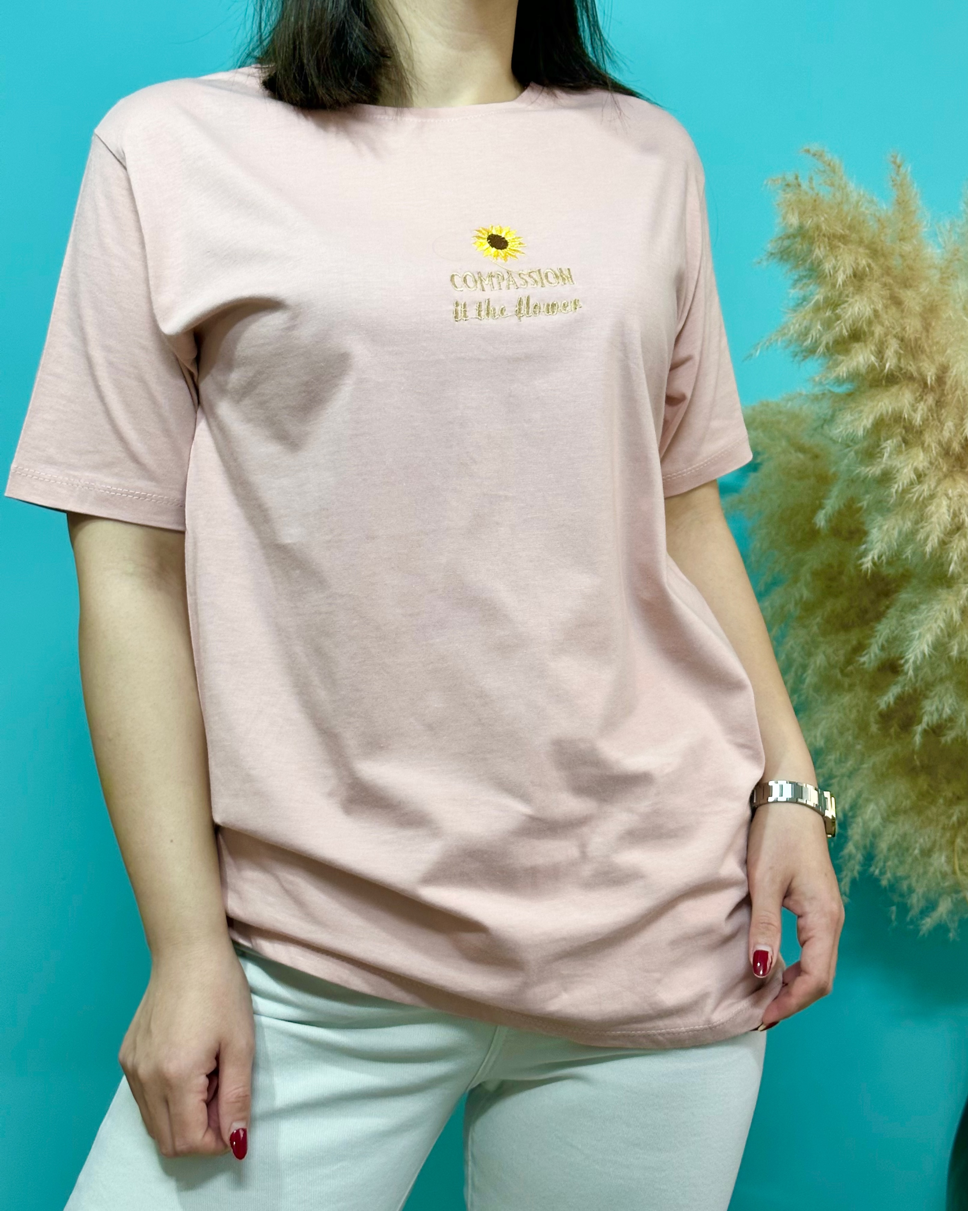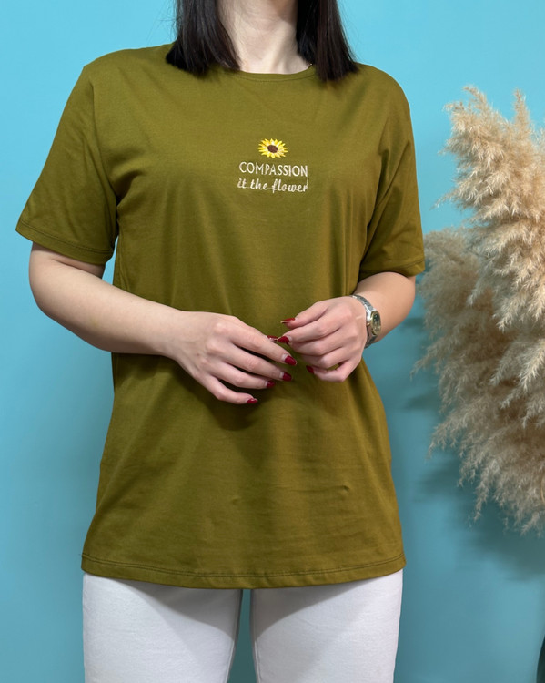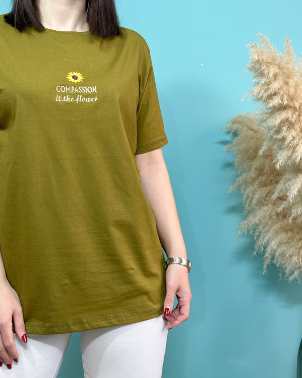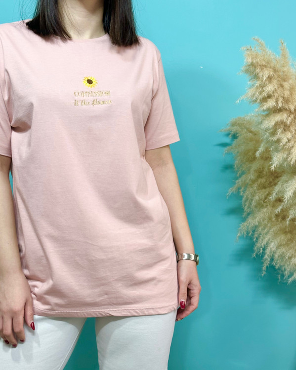 تیشرت ، سوپر پنبه _ موارد استفاده روزانه _ قواره نرمال _ گل روی تیشرت گلدوزی شده _ فصل مناسب استفاده بهار و تابستان